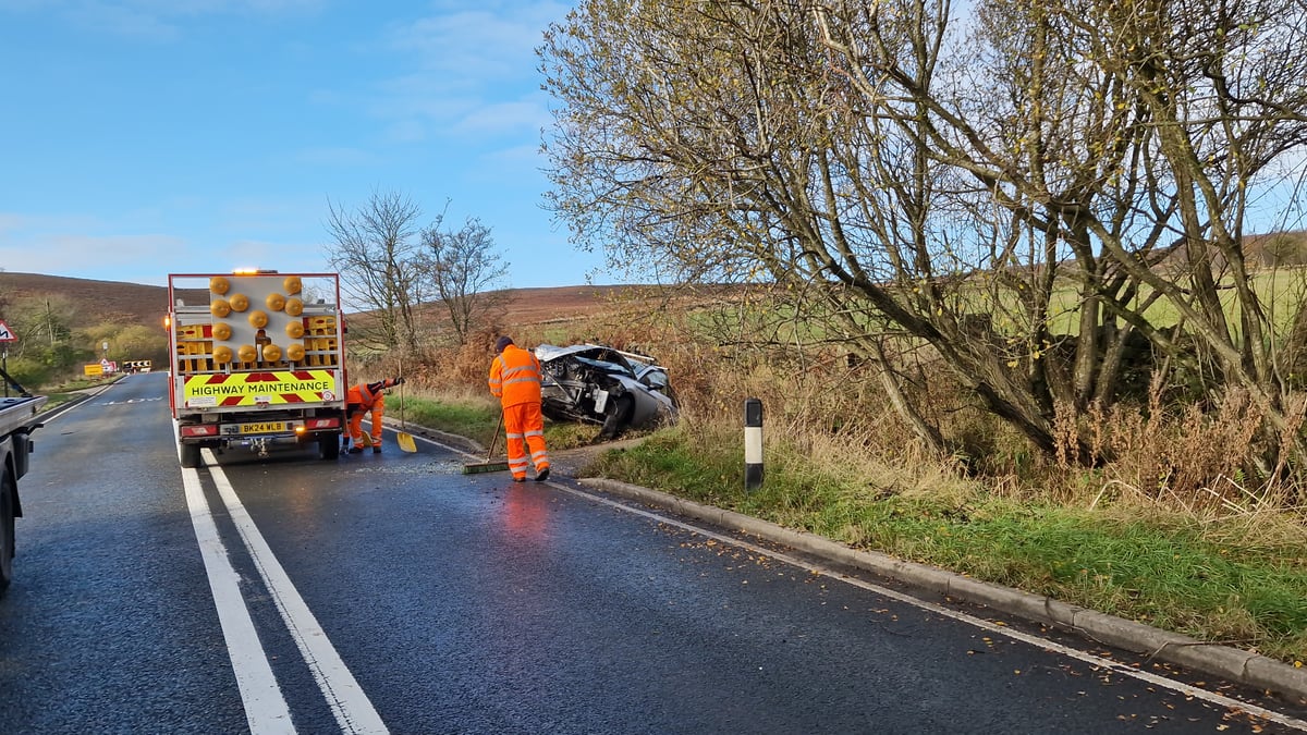 Highways workers wearing orange high visibility clothing were working to clear the road, following the incident.