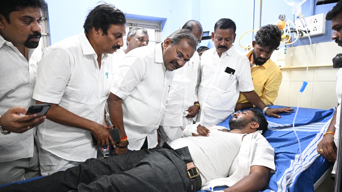 Later, the MLA visited the injured cadres at the Salem Government Mohan Kumaramangalam Medical College Hospital.