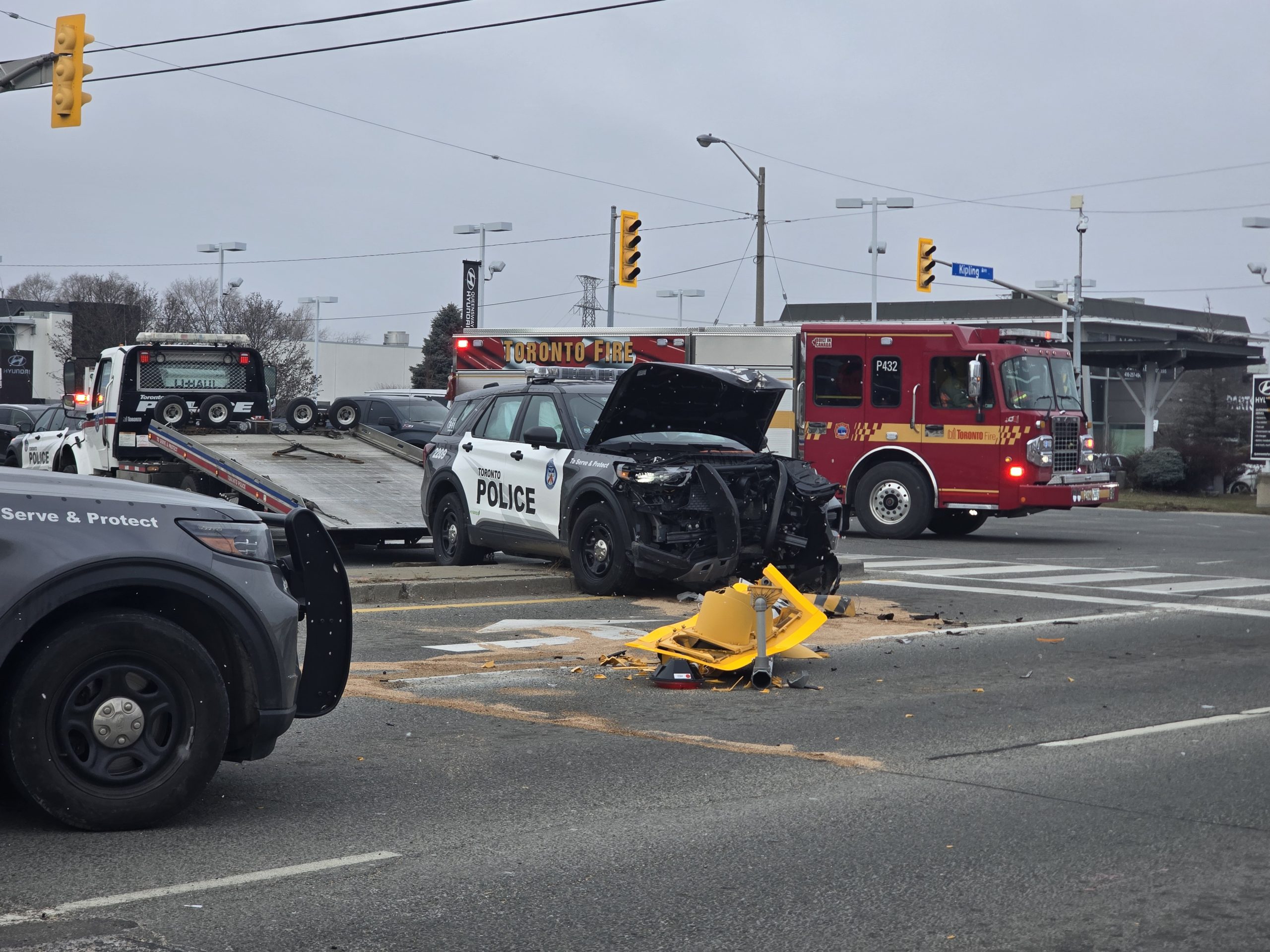 According to authorities, the officer was responding to a call at approximately 9:38 a.m. with its emergency equipment activated near The Queensway and Kipling Avenue when their cruiser collided with another vehicle.