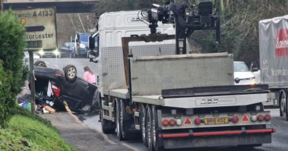 A lorry and the car crashed near the A449 underpass in Ombersley, near Droitwich, at 12.30pm on Wednesday (January 14).