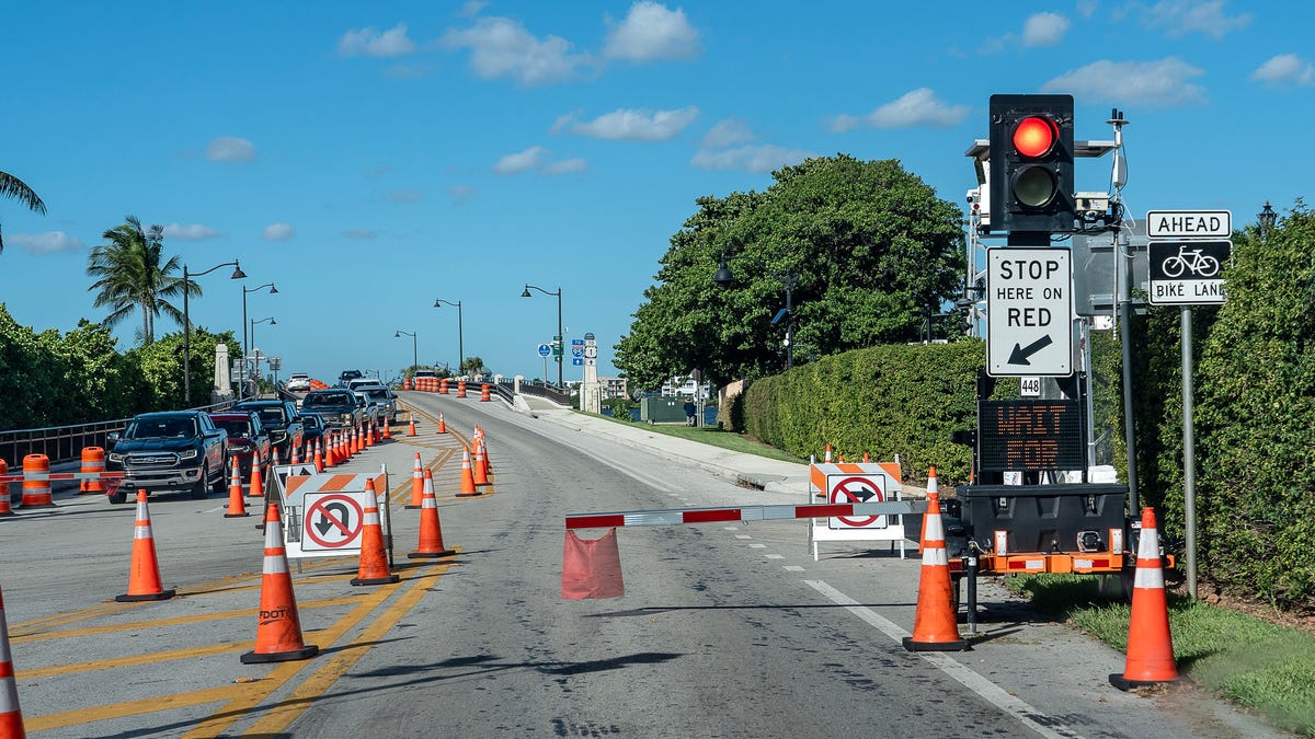 Drivers on Southern Boulevard next to President Donald Trump’s Mar-a-Lago Club are encountering a new feature: a traffic signal.