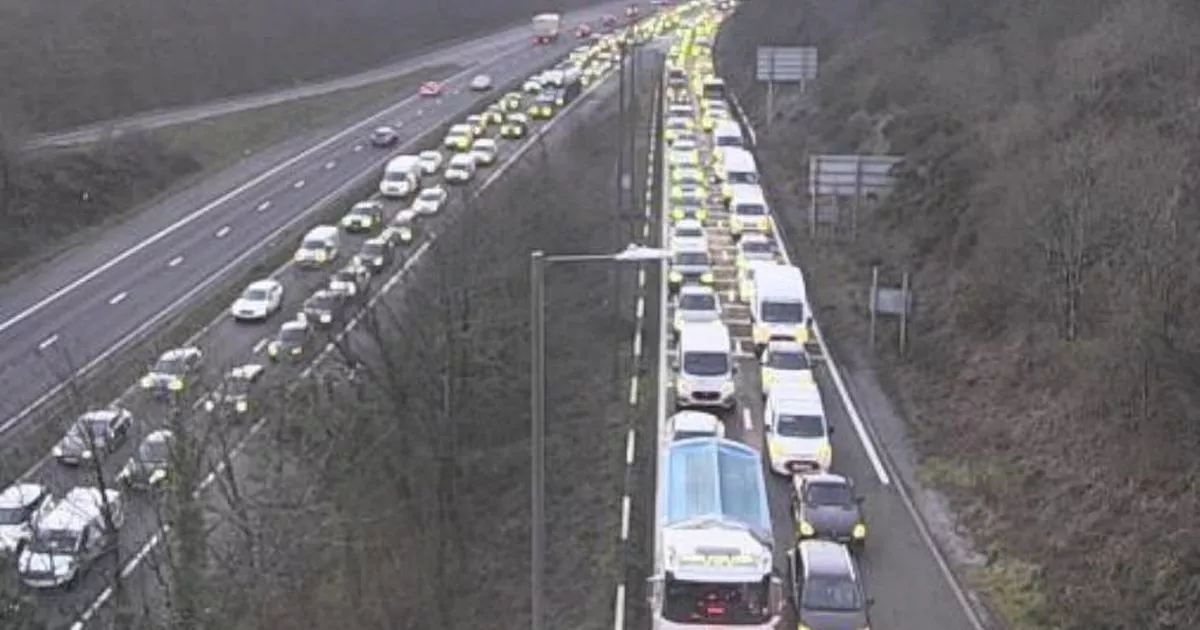 Delays remain severe in the affected area, as shown by the latest capture from Traffic Wales cameras.