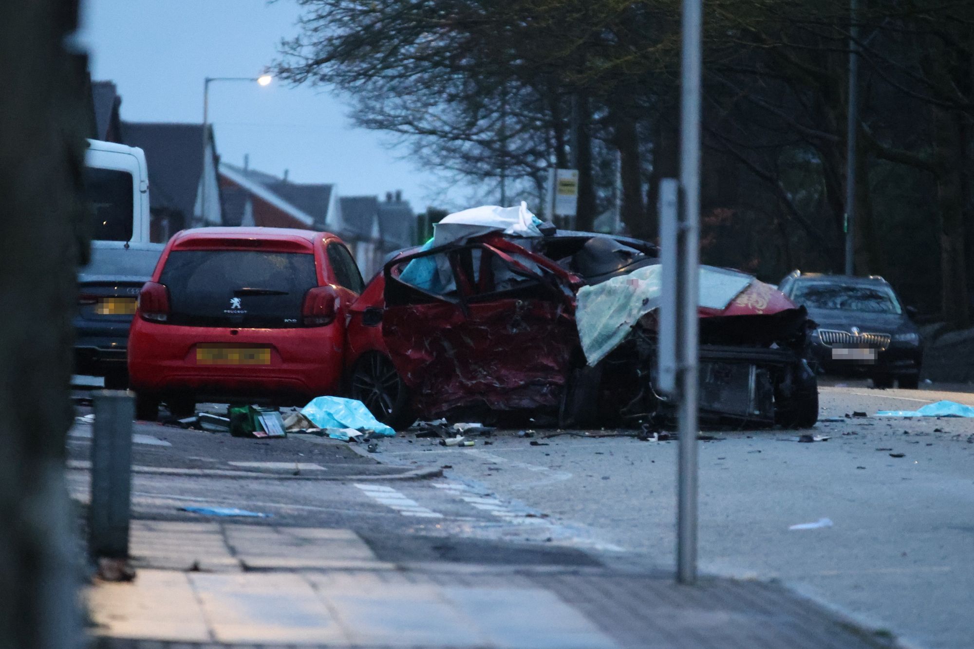 SIX people have been rushed to hospital following a horror car crash in the early hours of the morning, with debris strewn down the road.