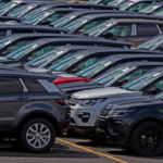 The second is larger, perhaps a van or a small bus. It is behind a tarpaulin.