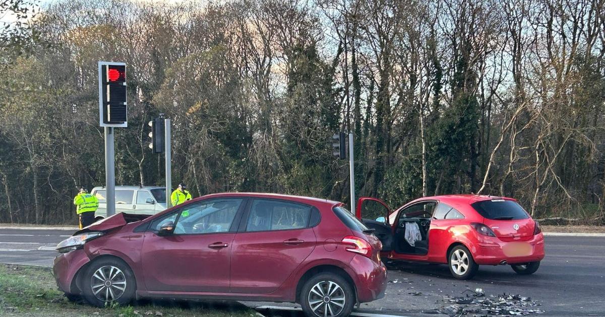 TWO cars have been involved in a crash at newly-installed traffic lights in Inverkip.