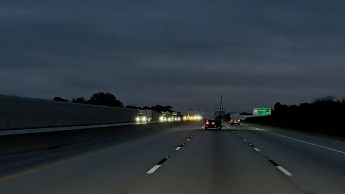 Video captured from a car behind the Toyota shows the plane’s rapid descent toward a busy roadway. Remarkably, the aircraft lands perfectly on top of the vehicle, then bounces twice before sliding onto the pavement and skidding to a stop in a cloud of sparks.