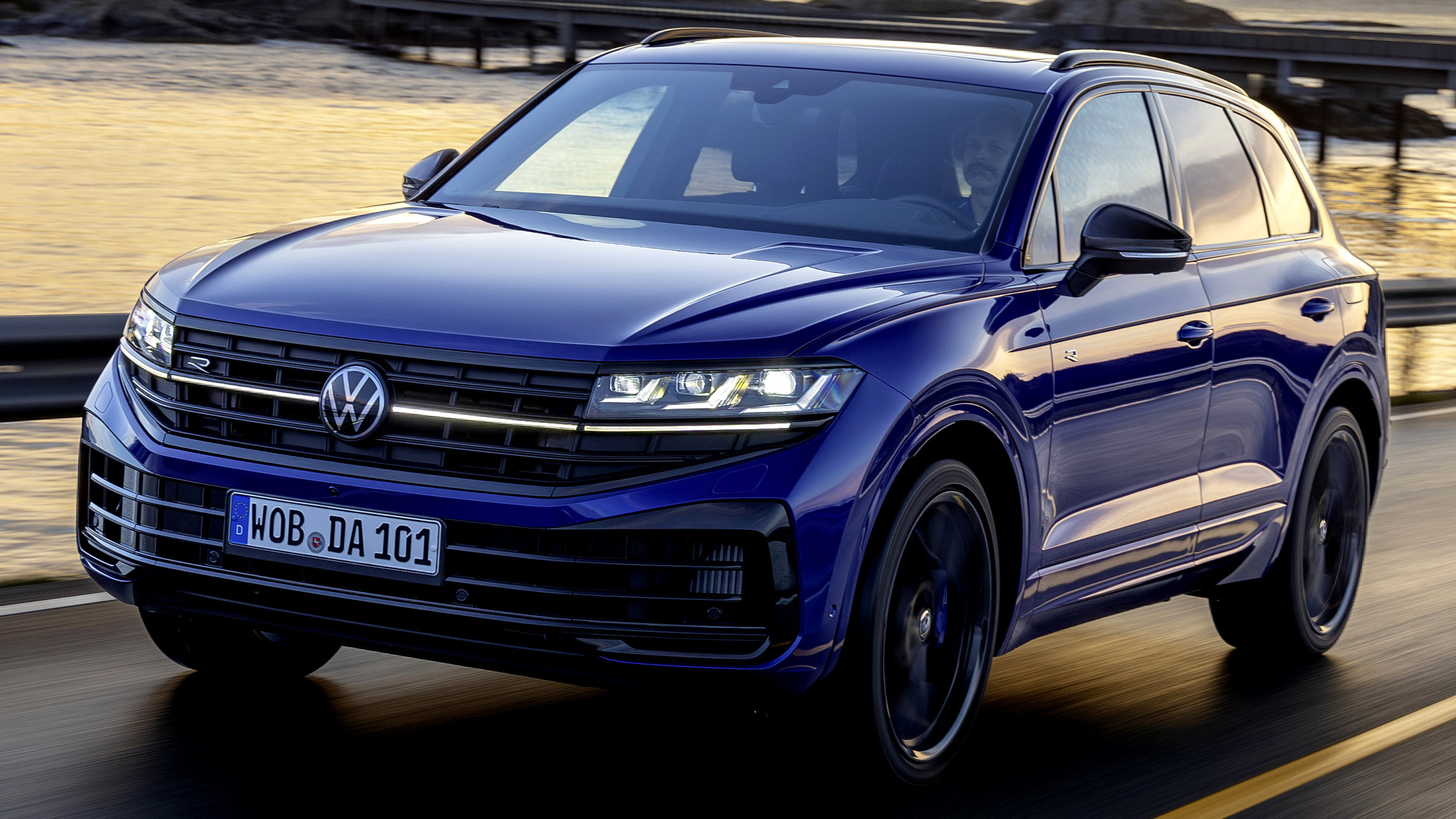 The R-Line shifts focus toward a sportier look and seating design, while the range-topping Touareg R Hybrid gathers everything into one package, from 22-inch wheels with blue brake calipers to the most potent drivetrain configuration in the lineup.