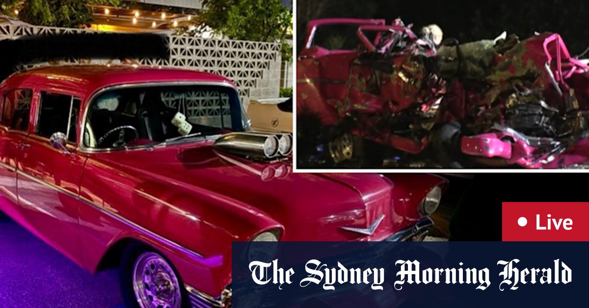 The aftermath of a fatal crash involving a vintage Chevrolet car on the Mitchell Freeway in Perth.