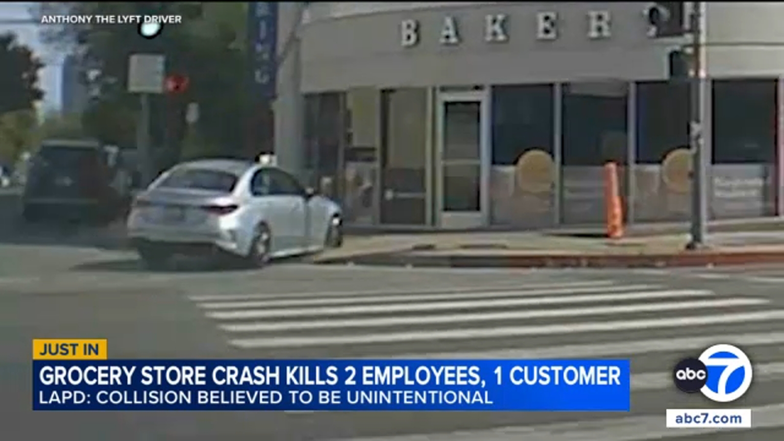 WESTWOOD, LOS ANGELES (KABC) — A passing vehicle's harrowing dashboard camera video emerged that shows a car slamming into a 99 Ranch Market in Westwood, as details came to light Friday about the three victims who were killed in the high-speed crash.