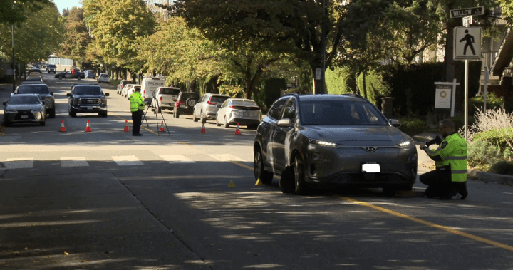 Vancouver police said a woman who was pushing a child in a stroller was struck by a car at West 16th Avenue and Willow Street.