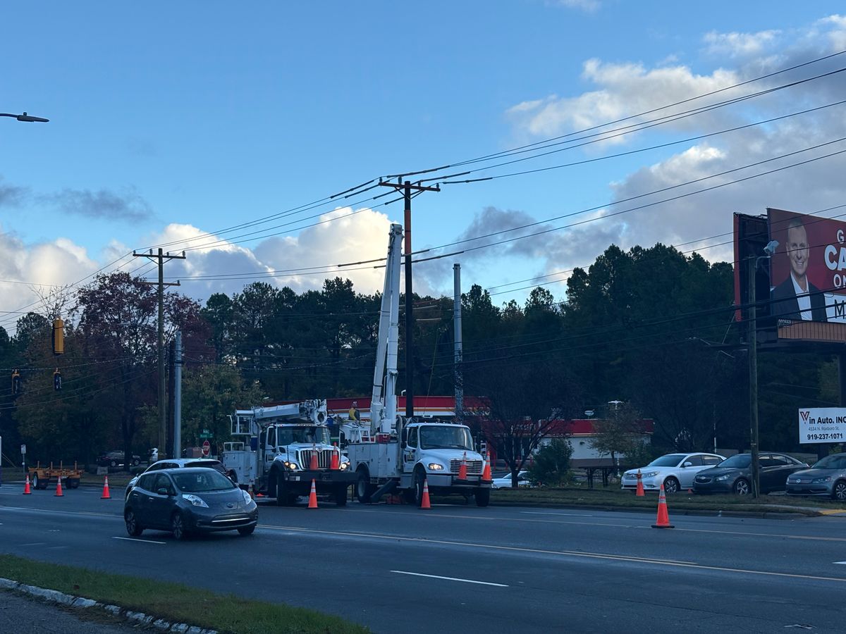 Part of North Roxboro Street was closed Thursday morning as crews worked to repair the pole. About 800 power outages were also reported in the area. The Bojangles on North Roxboro was also closed due to the outage.